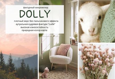Долли – смешное имя одной маленькой овечки, о которой между прочим, знает весь мир. Наша коллекция фактурного микровелюра Dolly очень на нее похожа, во-первых, у нее такая же «кудрявая шубка», так называемый эффект «cudle», а во-вторых, вполне возможно, что она станет не менее известной, чем ее тёзка овечка.
